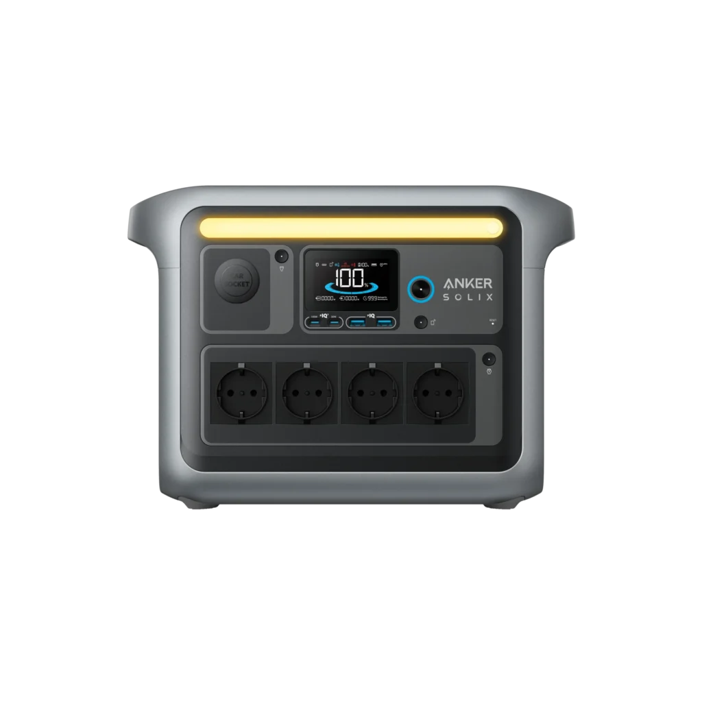 - Anzahl der Anschlüsse: 9 (4x AC, 2x USB-C, 2x USB-A, 1x 12V KFZ-Steckdose)